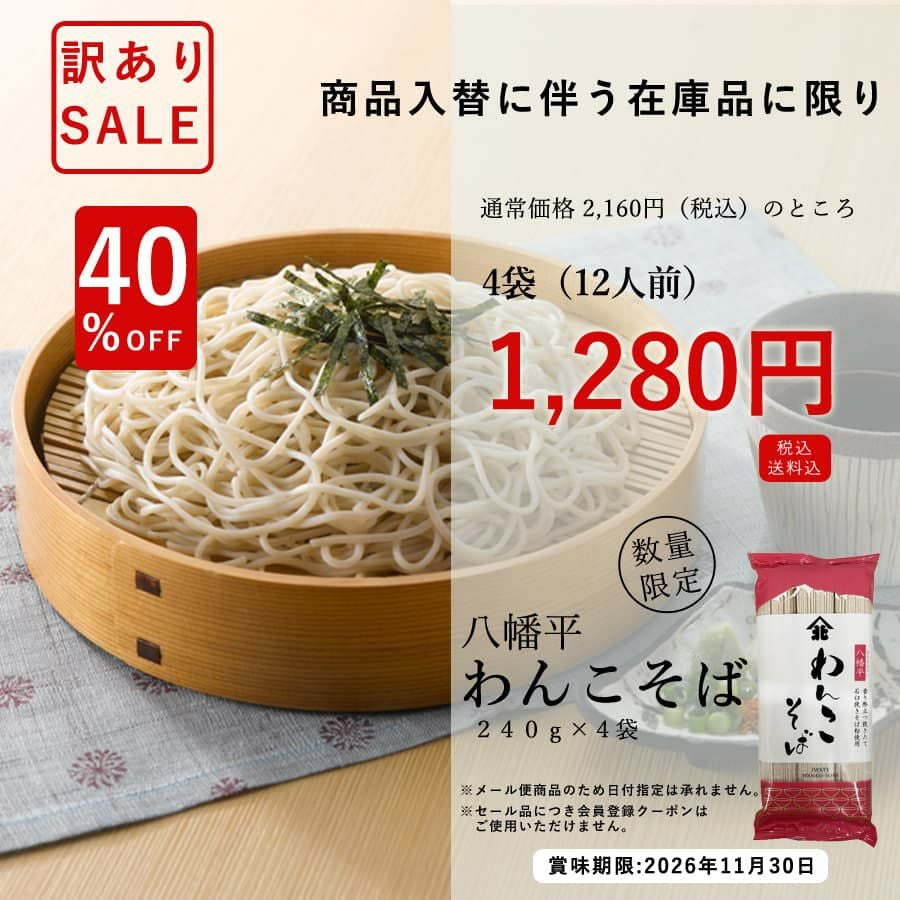 商品入替に伴う訳ありセール品 八幡平わんこそば 4袋(12人前)