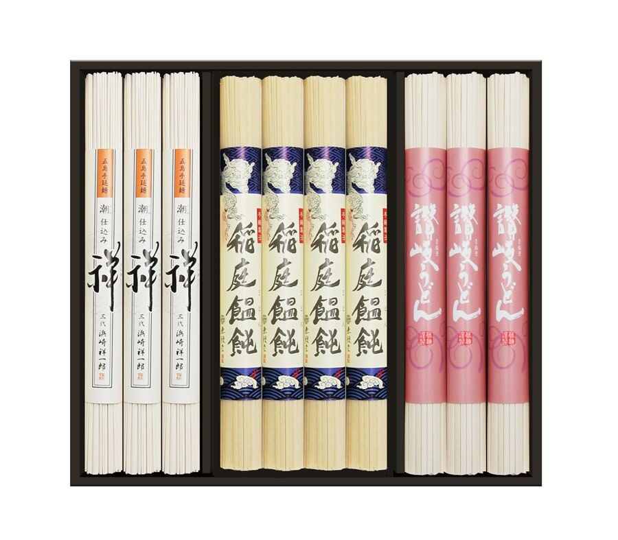 五島うどん100g×3、稲庭うどん90g×4、讃岐うどん100g×3