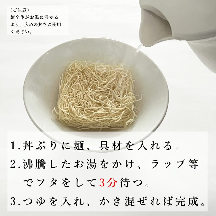 手延べそうめんを特殊冷熱加工により即席にゅうめんに仕立てました。具材には殻付きのはまぐりが2粒。上品な白だしにピリッと柚子七味をきかせてお楽しみください。